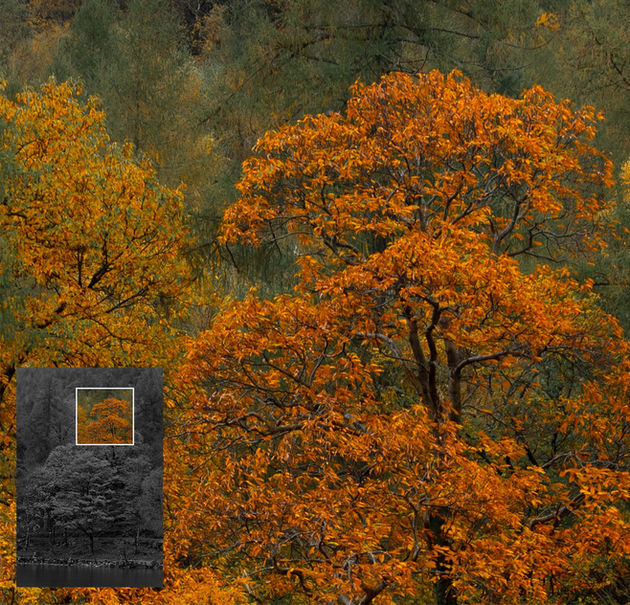 Autumn had completely taken hold here, cloaking the hillside in layers of yellows, oranges and rich red tones. The composition naturally stacked itself, the rich tapestry of colours rising in tiers from the still water’s edge, each tree adding its own tone to the display. A long exposure softened the water just enough to enhance the calm, without giving away the technique. Pockets of green broke through the warmth, offering a contrast that kept the scene from becoming overwhelming. Framed tightly, the image draws the eye to the vibrancy of the foliage, celebrating the fleeting beauty of this season in full expression.